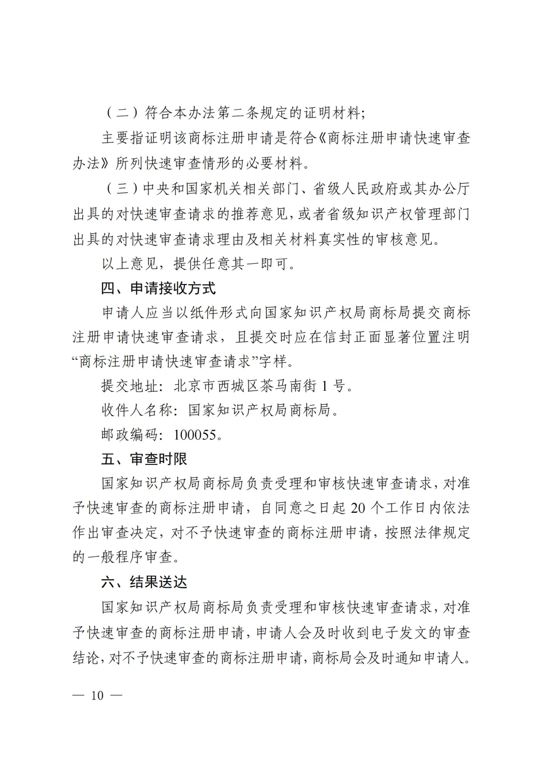 第十条 本办法由国家知识产权局负责解释。国家知识产权局商标局承担商标注册申请快速审查的具体工作。