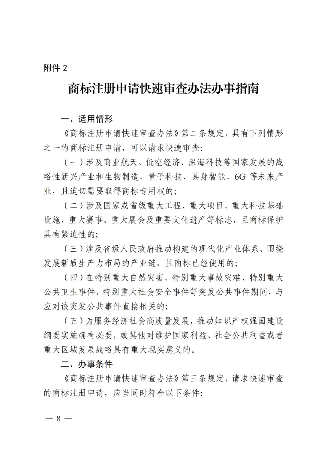 (一)涉及商业航天、低空经济、深海科技等国家发展的战略性新兴产业和生物制造、量子科技、具身智能、6G等未来产业,且迫切需要取得商标专用权的;