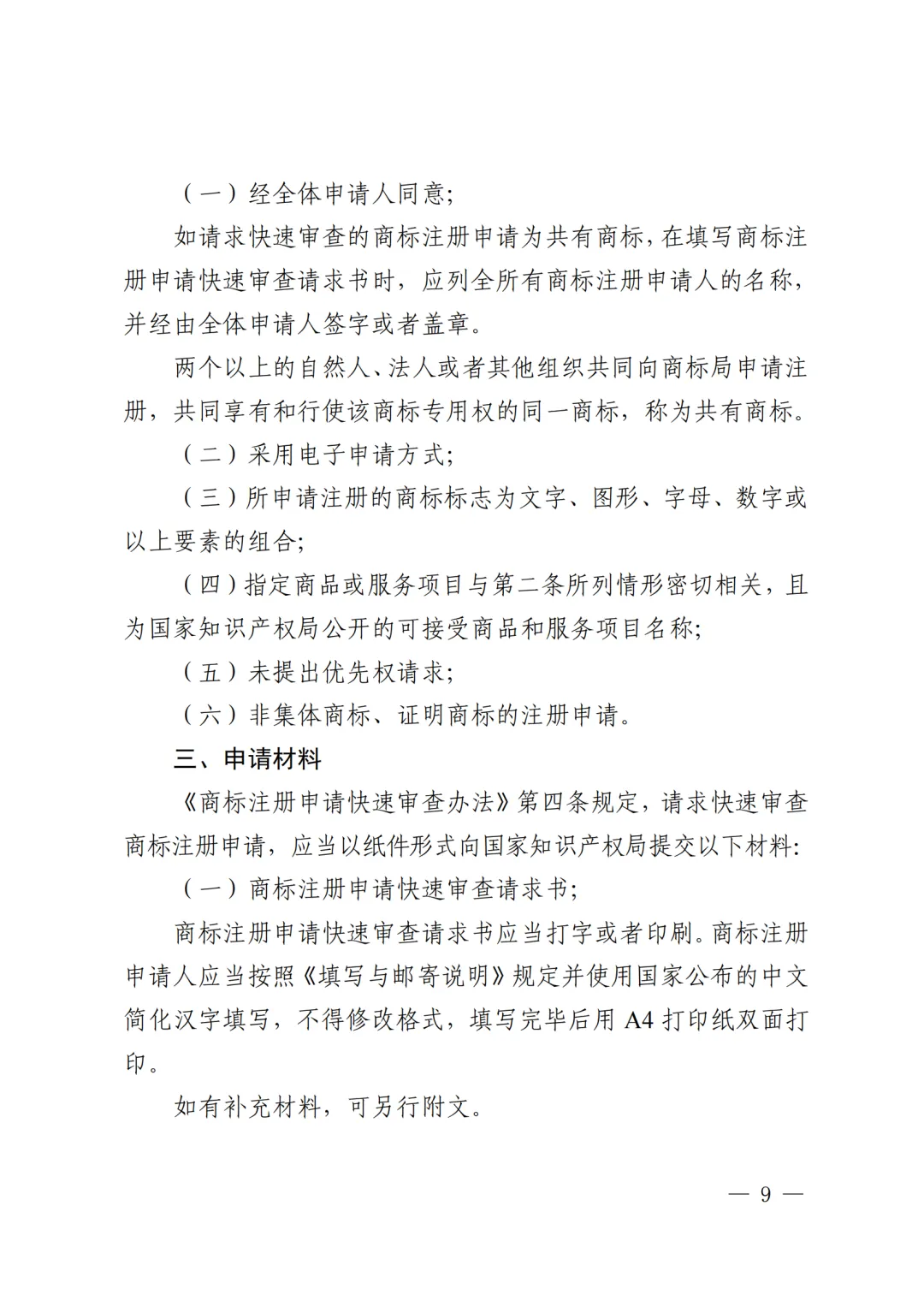 第二条 具有下列情形之一的商标注册申请,可以请求快速审查:
